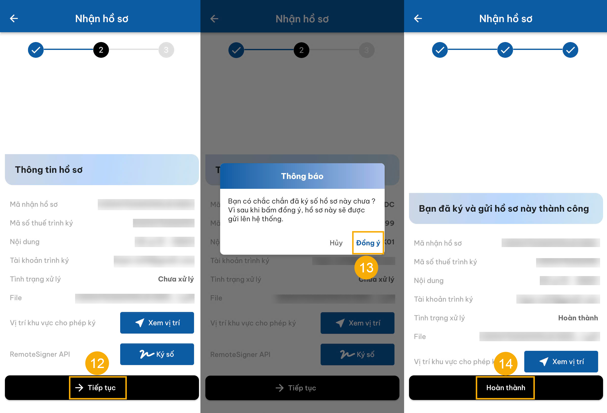 (13) Nhấn Đồng ý để xác nhận hồ sơ đã ký và gửi lên hệ thống