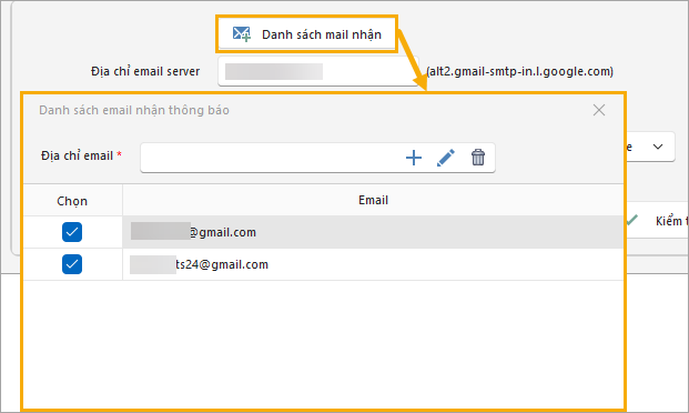 - Nhập mail nhận và bấm dấu + để lưu vào danh sách.