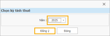 Xuất hiện bảng Chọn kỳ tính thuế, chọn kỳ kê khai, nhấn Đồng ý.