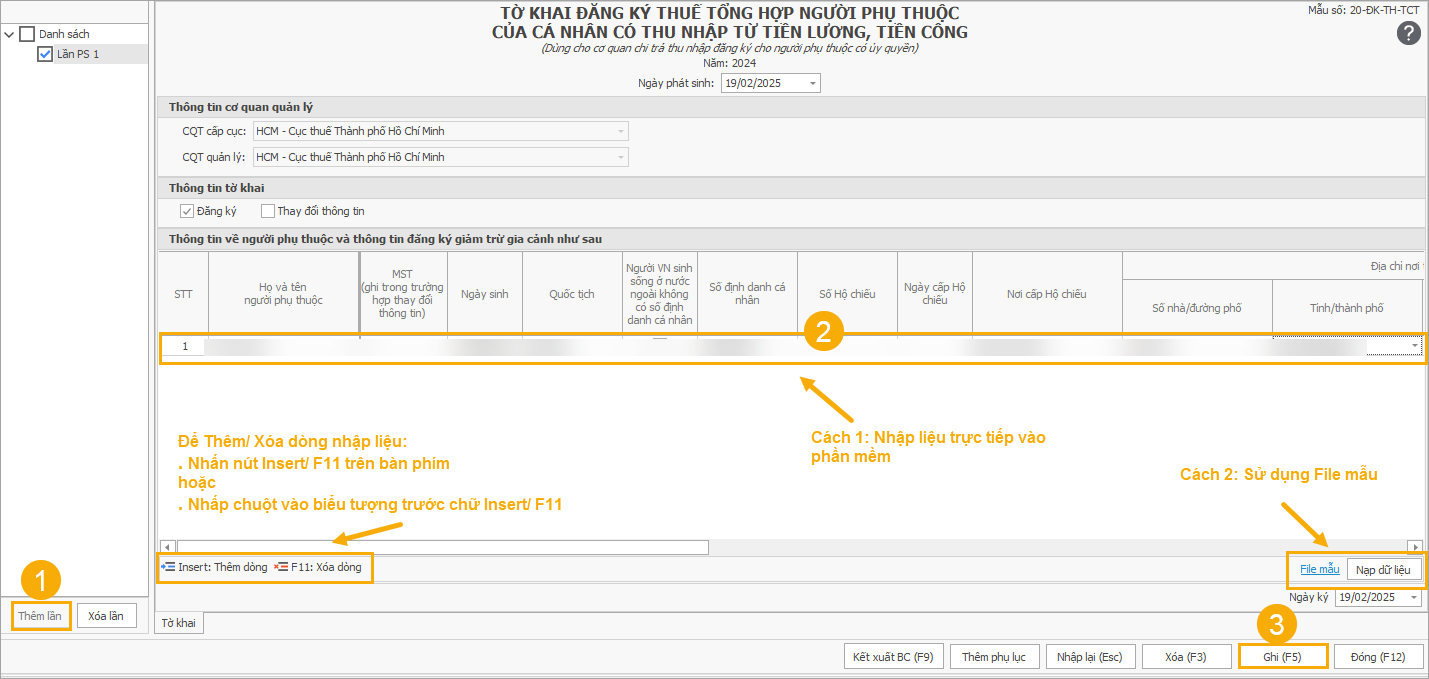 - Nhập dữ liệu trực tiếp trên giao diện hồ sơ trong phần mềm.
