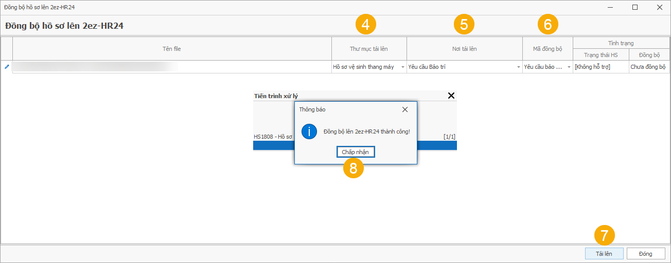 (2) Tích chọn hồ sơ cần đồng bộ lên 2ez-HR24