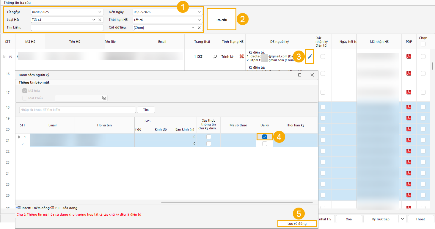 (3) Tại cột DS người ký, nhấn vào biểu tượng cây viết