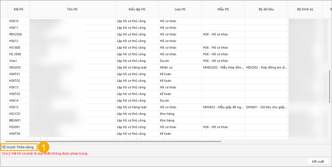 Lưu ý: Mã hồ sơ phải là duy nhất không được phép trùng.