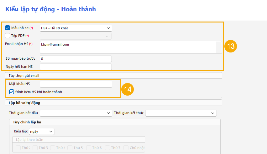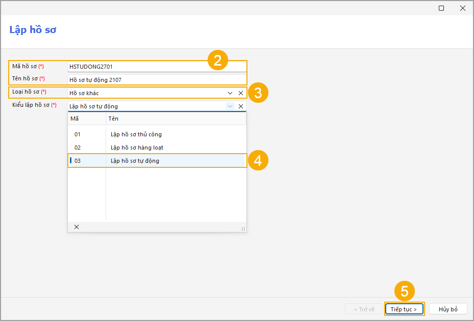 (4) Kiểu lập hồ sơ: Chọn Lập hồ sơ tự động.