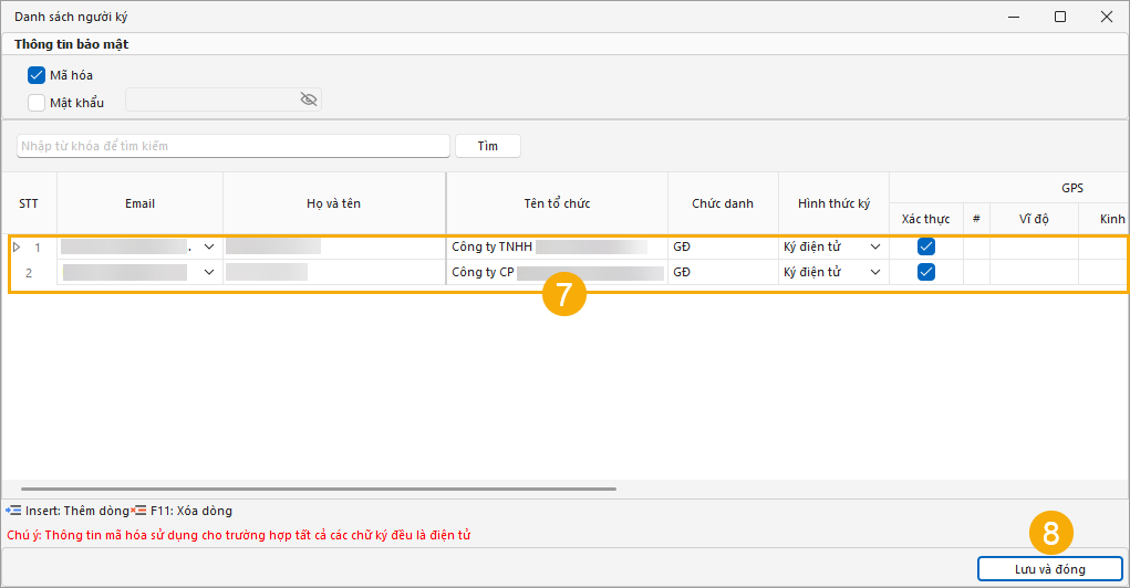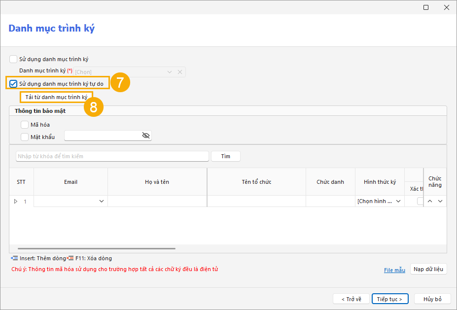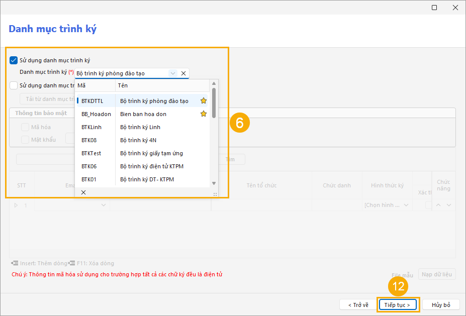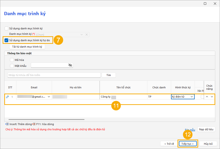 (*) Lưu ý: Thông tin mã hóa sử dụng cho trường hợp tất cả các chữ ký đều là điện tử.
