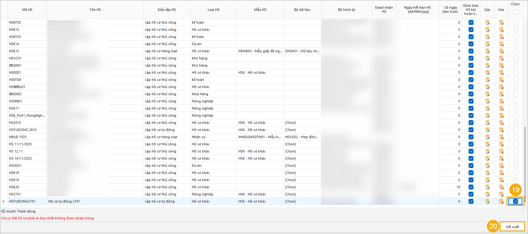 (19) Tích chọn vào hồ sơ cần kết xuất.