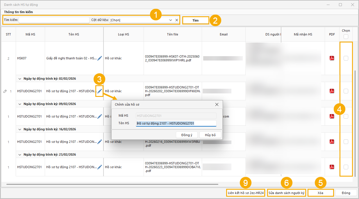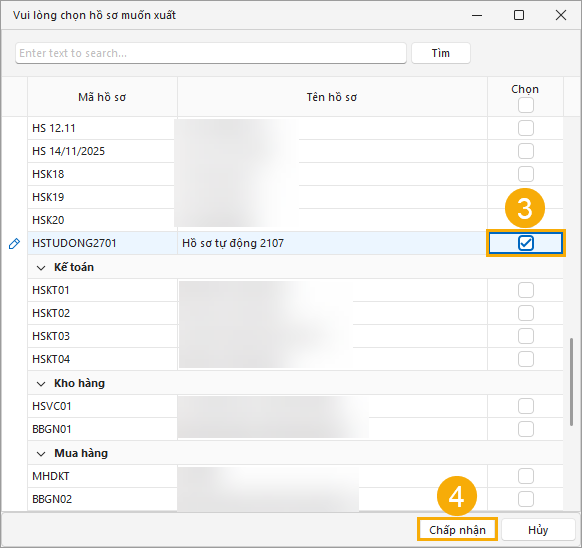 (4) Tích chọn một hoặc nhiều hồ sơ.