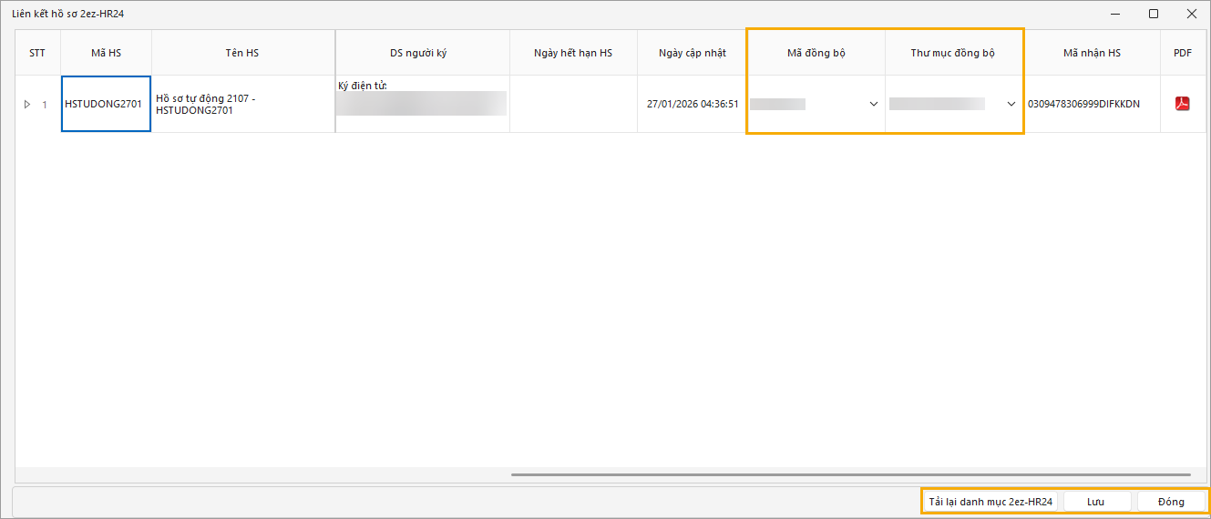 (9) Nhấn nút Liên kết hồ sơ 2ez-HR24, xuất hiện giao diện mới, tại đây có thể chọn thư mục đồng bộ, mã đồng bộ.