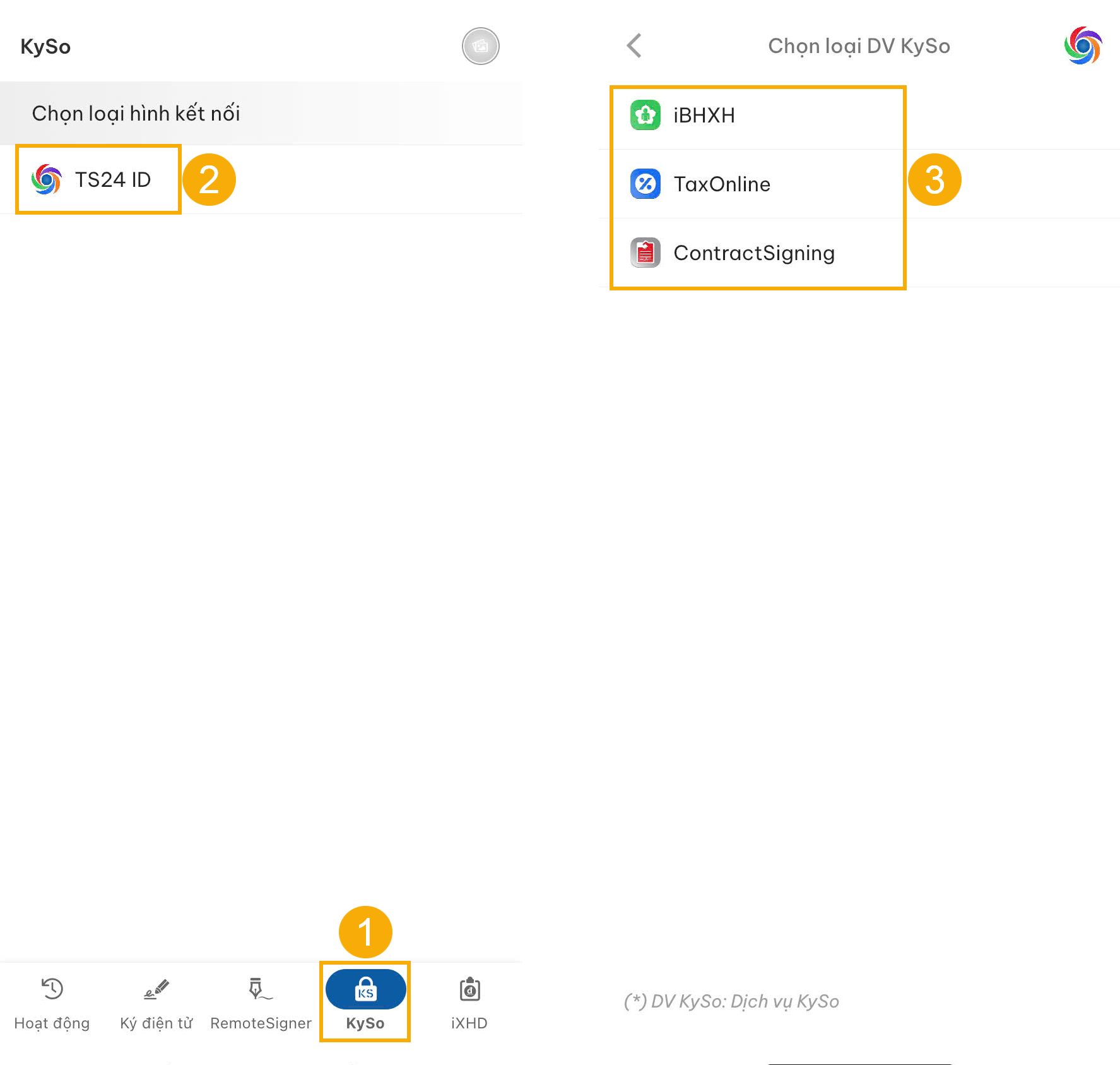 (1) Mở ứng dụng SafetySigning, tại giao diện chính, chọn mục KySo.