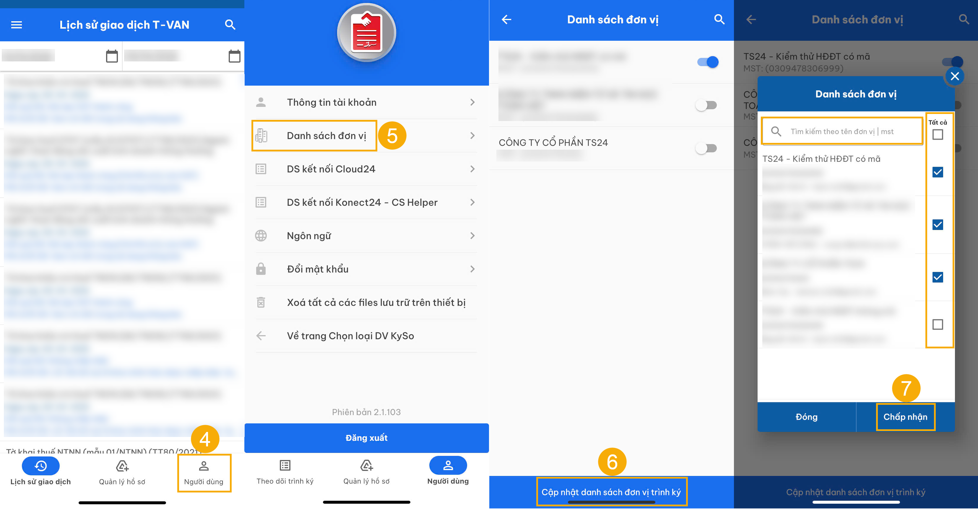 (6) Nếu không thấy công ty bạn cần làm việc trong danh sách, chọn Cập nhật danh sách đơn vị trình ký.