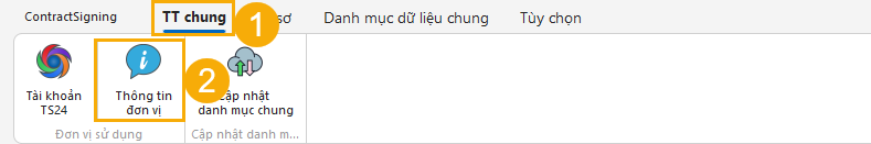 (1) Trên thanh trình đơn, vào mục TT chung.