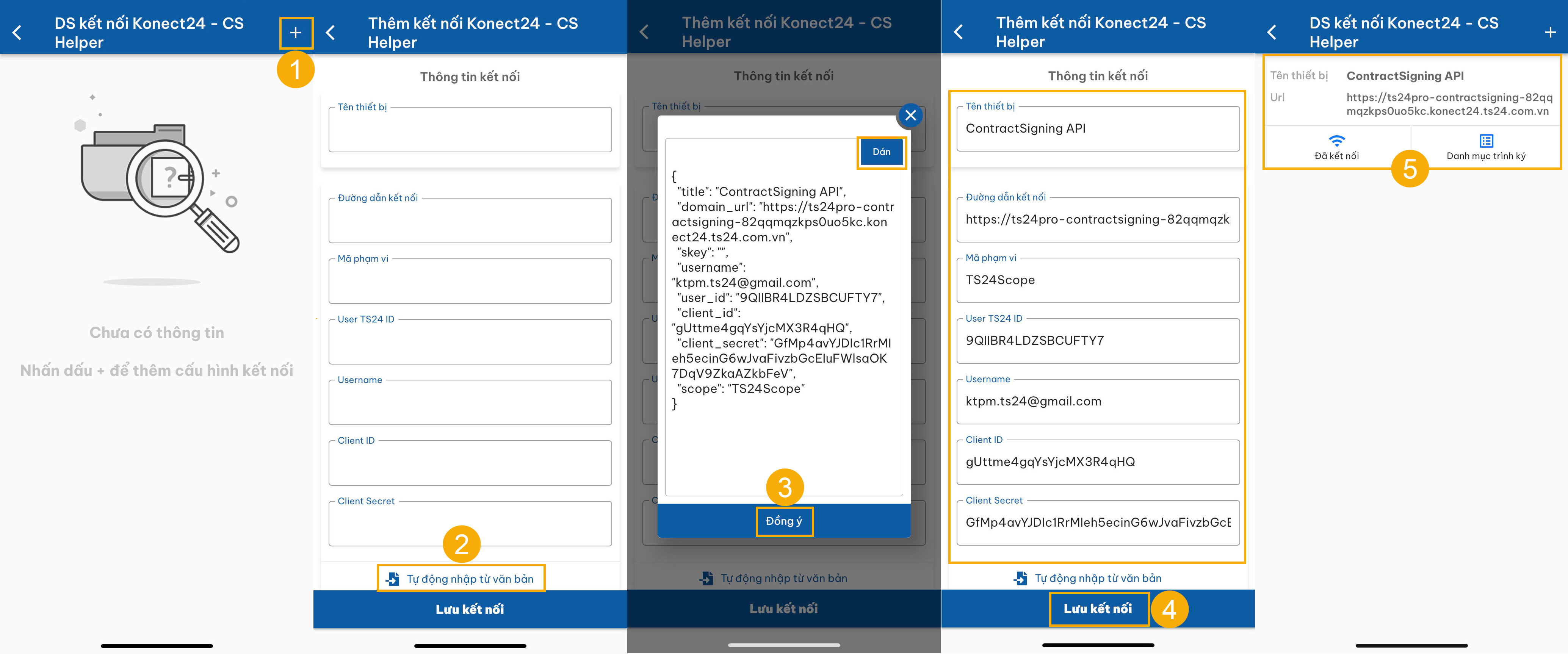 (7) Nhập thông tin kết nối ContractSigning API ở Konect24 hoặc nhấn Tự động nhập từ văn bản
