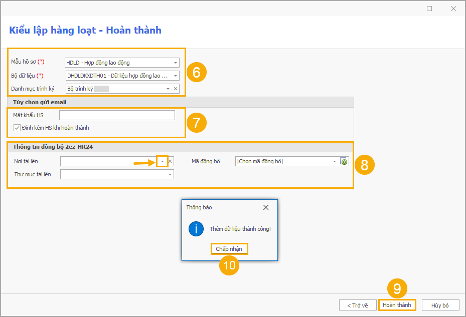(8) Nhập đầy đủ thông tin đồng bộ 2ez-HR24 (Nếu có).