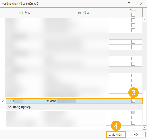 (11) Tích chọn vào hồ sơ cần kết xuất.