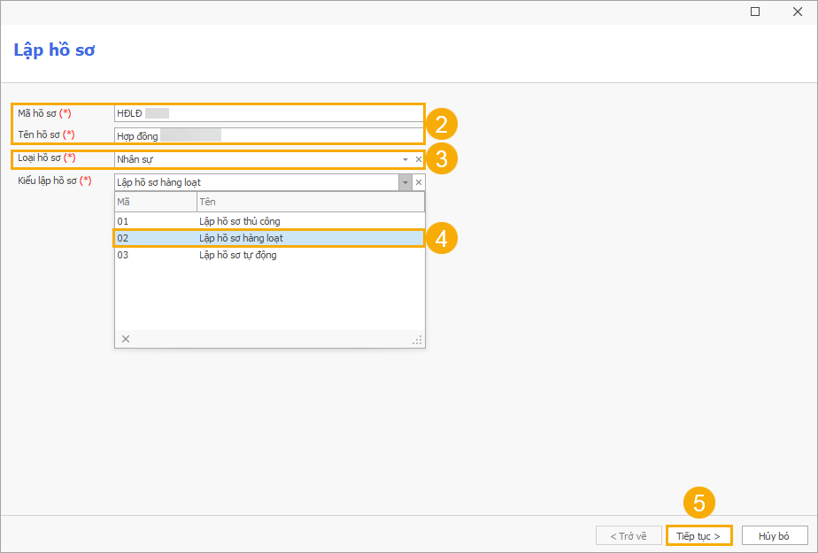 (4) Kiểu lập hồ sơ: Lập hồ sơ hàng loạt