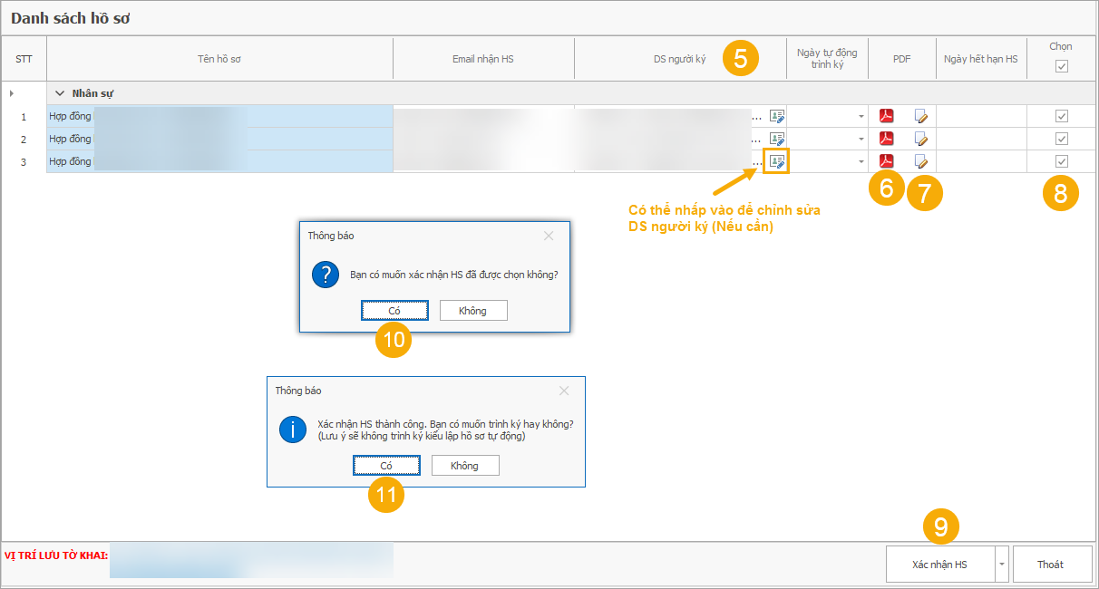 (5) DS người ký: Có thể nhấp vào biểu tượng hình danh thiếp để chỉnh sửa DS người ký (nếu cần).