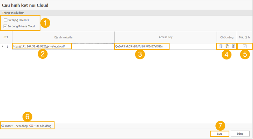 (3) Access Key: Điền thông số của Private Cloud của đơn vị.
