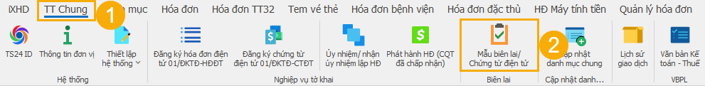 (1) Trên thanh tiêu đề, chọn mục TT chung.