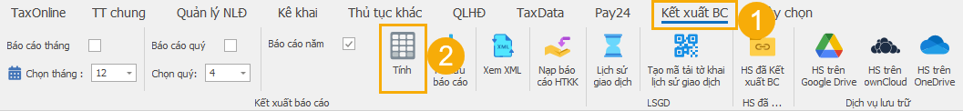 (2) Tích chọn tháng/ quý/ năm, bấm Tính.