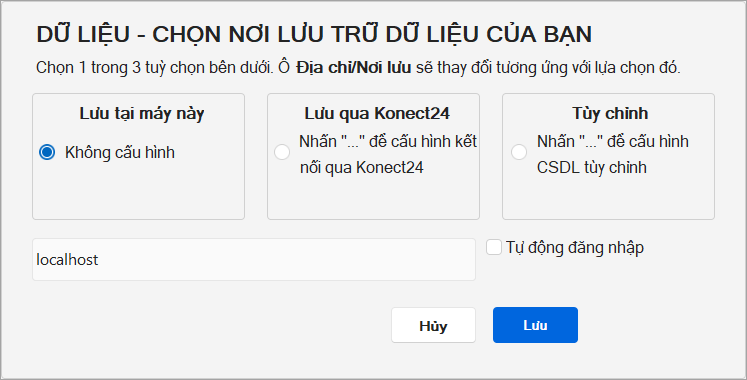 Dữ liệu sẽ lưu trữ tại máy, hiển thị localhost không cần cấu hình.
