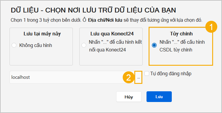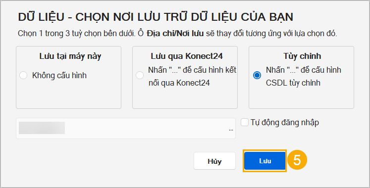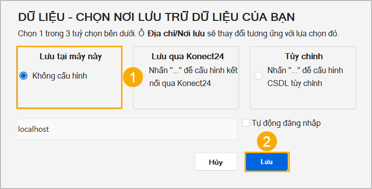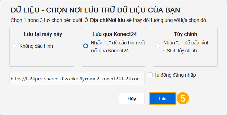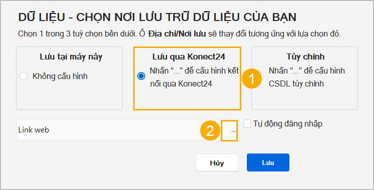 Khi nhấn Lưu dữ liệu, hệ thống hiển thị giao diện Dữ liệu - Chọn nơi lưu trữ dữ liệu của bạn: