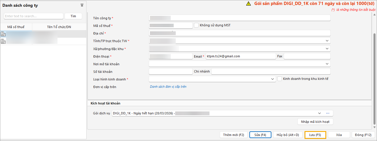 (4) Nhấn Lưu (F5) để lưu thông tin.
