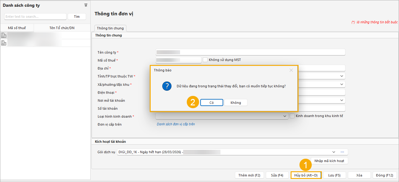 (1) Nhấn Hủy bỏ (Alt + D / Ctrl + D)