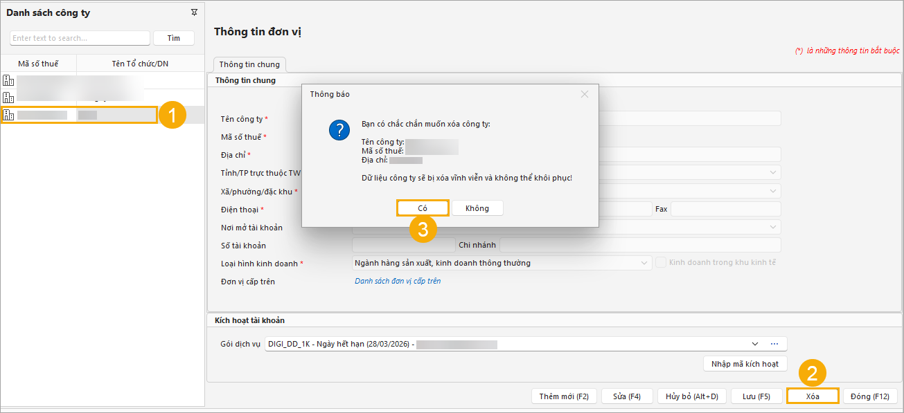 - Chức năng: Xóa một thông tin đơn vị khỏi danh sách quản lý.