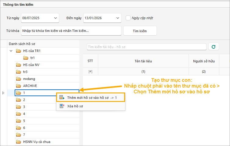 Thư mục (Hồ sơ) dùng để tạo và quản lý không gian lưu trữ, nhằm tập hợp các tài liệu có liên quan theo từng nhóm nội dung.