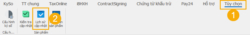 (1) Trên thanh tiêu đề, chọn vào Tùy chọn.