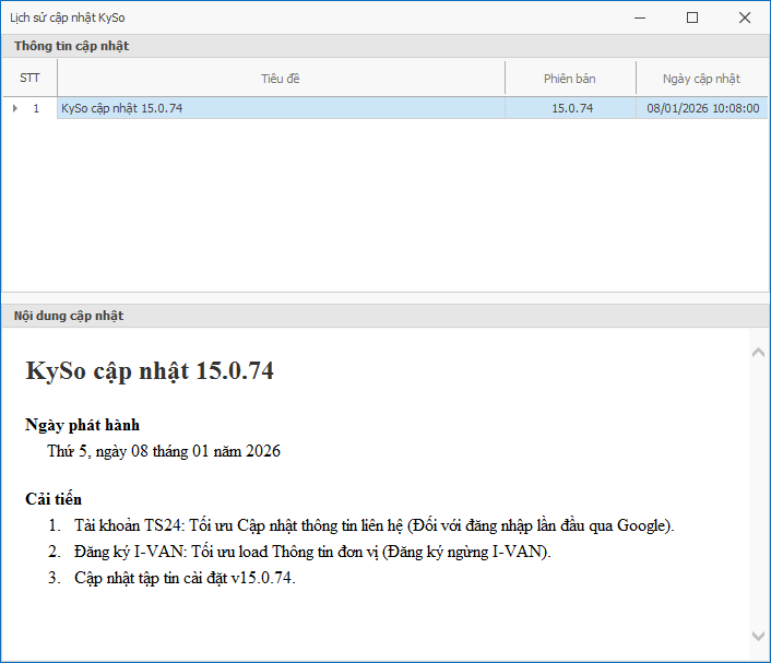 Chức năng hỗ trợ xem chi tiết và thông tin nôi dung của các bản cập nhât trên KySo.