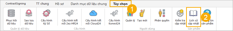 Giao diện Lịch sử cập nhật ContractSigning: