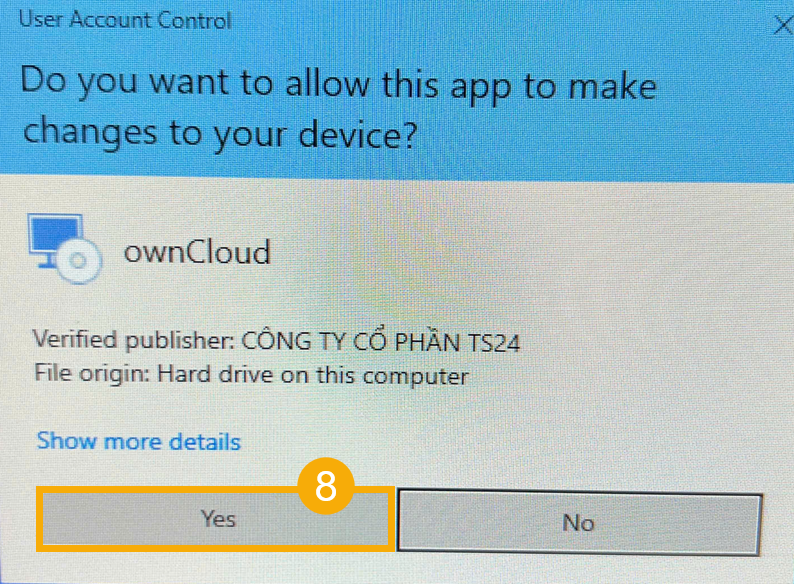 (8) Nếu xuất hiện hộp thoại User Account Control, bấm Yes.