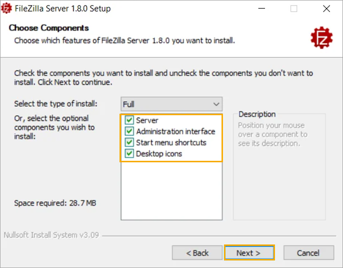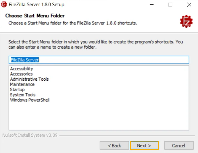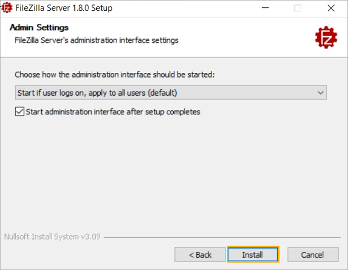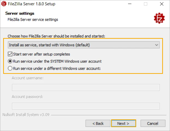 Cho phép dịch vụ FileZilla Server khởi động cùng hệ thống, tích chọn theo ảnh và nhấn Next.