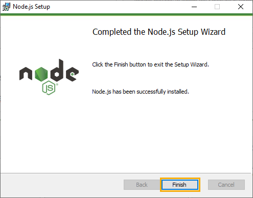 Sau khi cài đặt hoàn tất, chọn Finish để kết thúc quá trình cài đặt Node.js.
