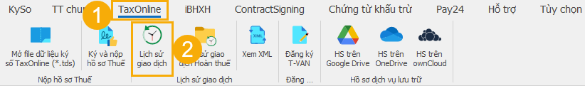 (1) Trên thanh tiêu đề, chọn vào TaxOnline.