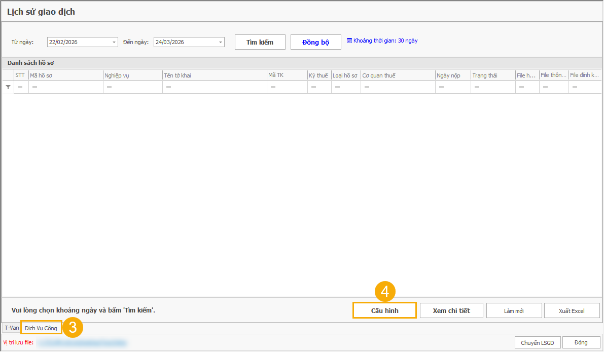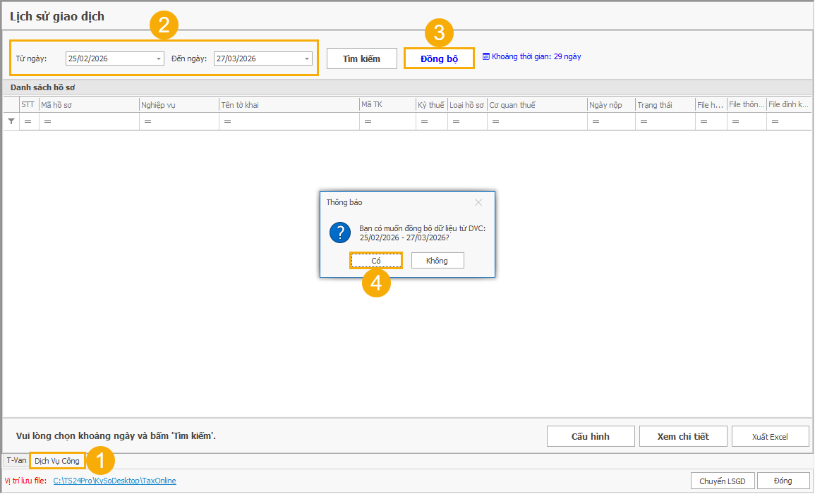 (3) Bấm Đồng bộ. (Thao tác này chỉ cần thực hiện 1 lần, các lần sau người dùng bấm Tìm kiếm để xem tờ khai).
