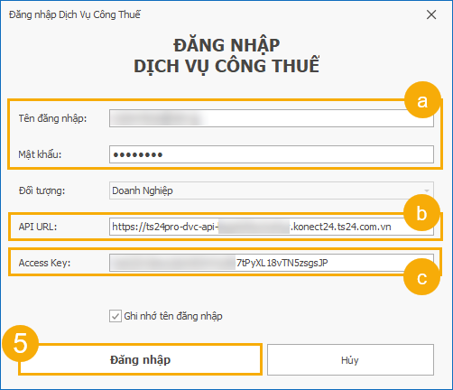 - Access Key: Khóa bảo mật trên DVC Thuế API của Konect24.