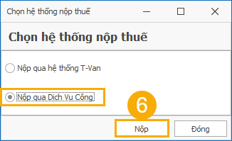 (6) Xuất hiện bảng Chọn hệ thống nộp thuế, tích chọn Nộp qua Dịch vụ Công, bấm Nộp.