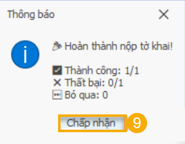 (9) Bấm nút Chấp nhận để hoàn thành nộp tờ khai.