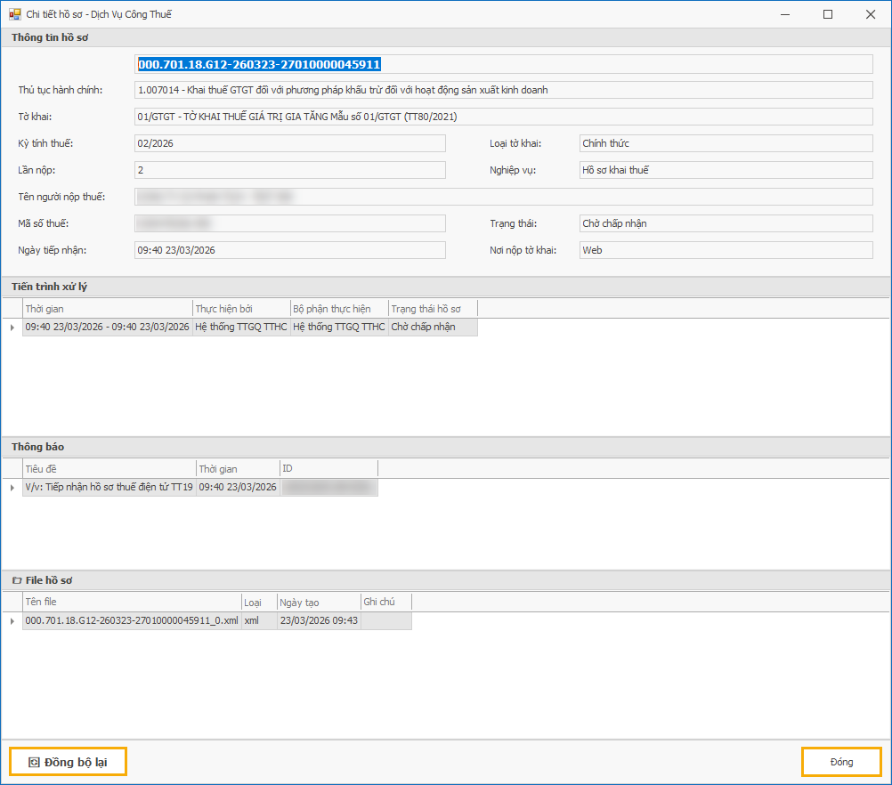 III. Hướng dẫn cách đồng bộ tờ khai đã nộp từ dịch vụ công của thuế: