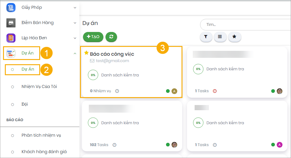 (1) Vào phân hệ Dự án