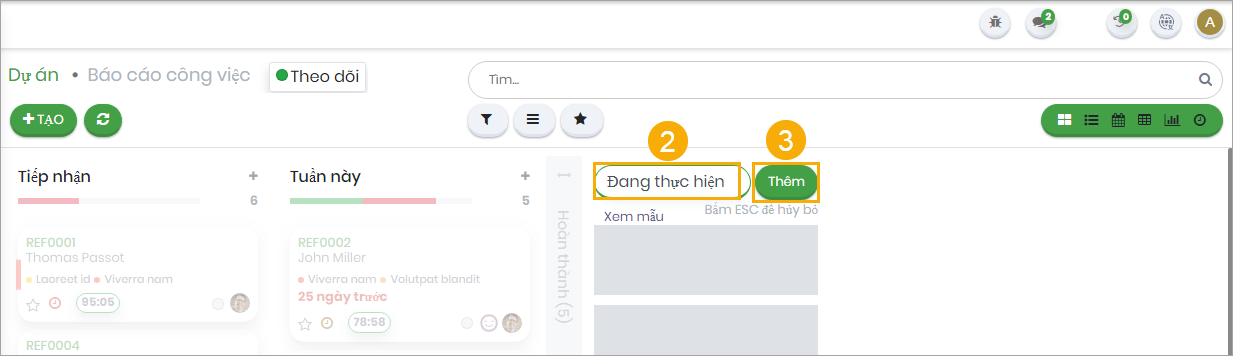Tại giao diện hiển thị Kanban của dự án:
