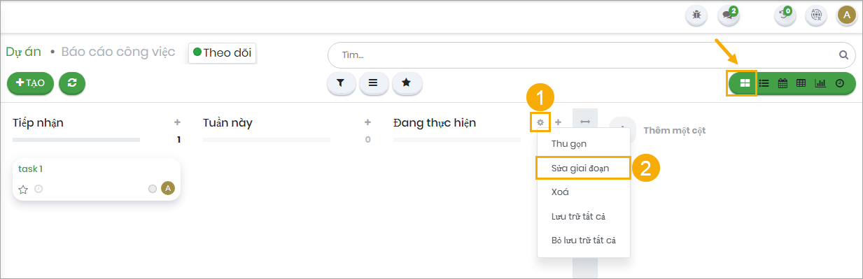 Lưu trữ tất cả: Chuyển toàn bộ nhiệm vụ trong giai đoạn sang trạng thái lưu trữ.