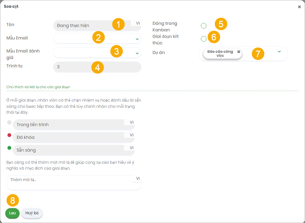 Xóa: Xóa giai đoạn khỏi dự án.