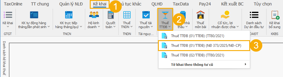 (3) Chọn Thuế TTĐB (01/TTĐB) (NĐ 373/2025/NĐ-CP).