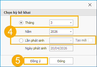 (4) Tài bảng Chọn kỳ kê khai, tùy chọn Tháng hoặc Lần phát sinh.
