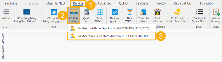 (3) Chọn Tờ khai thuế của tổ chức khai thay (01/TCKT) (TT18/2026).