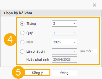 (4) Tại bảng Chọn kỳ kê khai, tùy chọn kỳ kê khai theo Tháng; Quý hoặc Lần phát sinh.