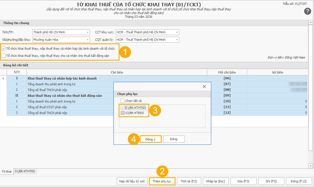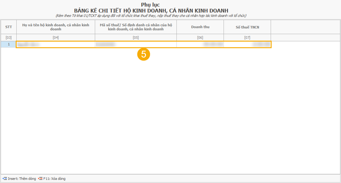 (5) Nhập liệu trên phụ lục đã chọn.